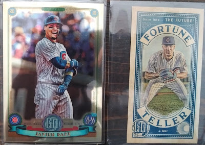 I only bought one pack of GQ this year, but I remembered that the box toppers this year were Chromed. I didn't register at first that this shiny GQ Baez was a box topper. Very cool! The Fortune Teller minis are a great insert set, and I didn't have the Baez, so this was already a great card. Once again, it wasn't until I was trying to log it on the database that I noticed this isn't a base insert. This is an Indigo parallel, numbered 152/250. Whoa! That's a nice upgrade.
